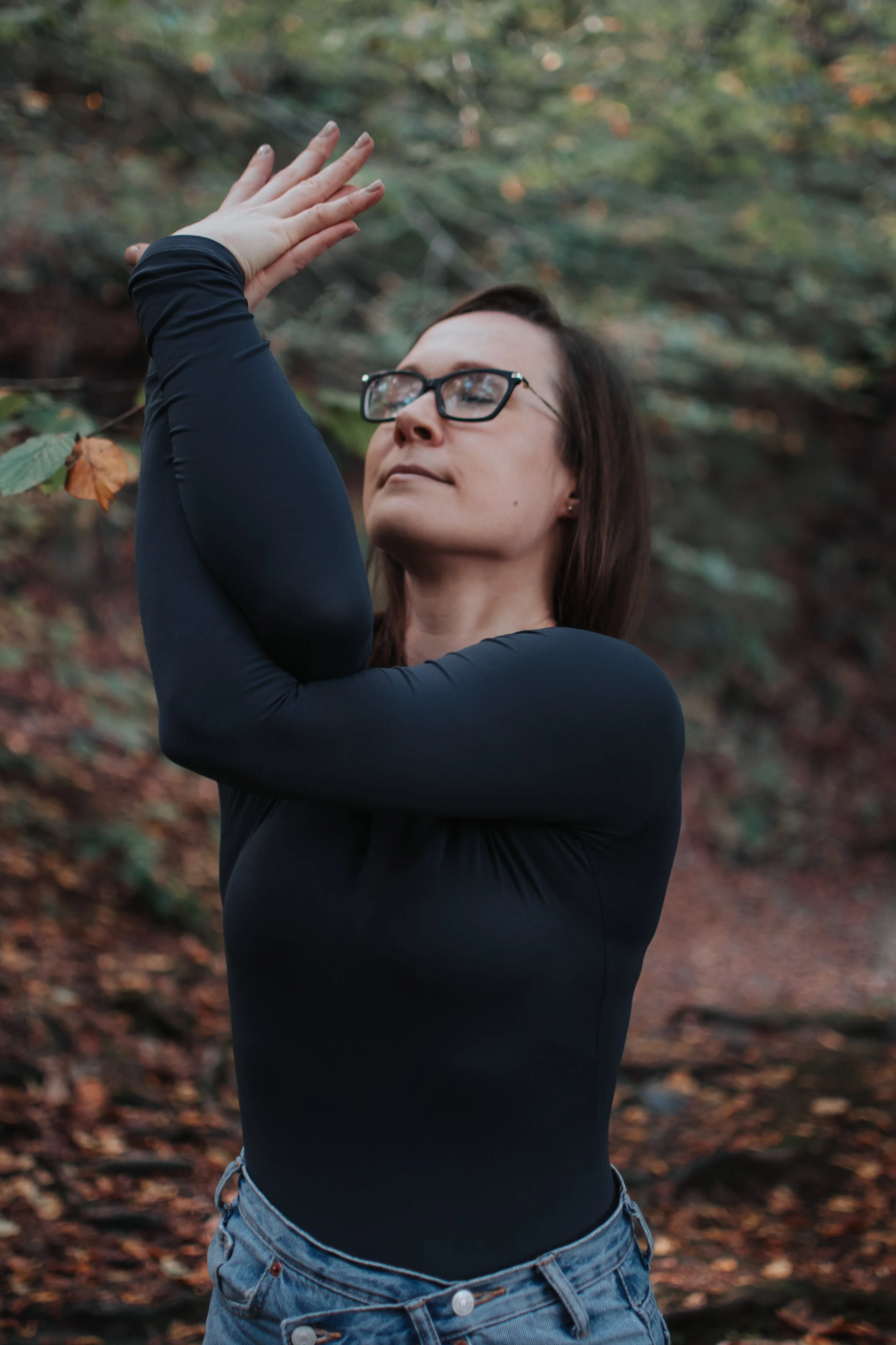Njene prakse so bolj dinamične narave, kjer skozi gibanje povezuje telo in um. Zasnovane so tako, da te izzovejo, hkrati pa podpirajo v tvojem lastnem ritmu. Poleg joge jo navdušujeta tudi filozofija in vse, kar je povezano s človekovo psiho. Po izobrazbi je magistrica filozofije in zgodovine, trenutno pa se pripravlja na novo poglavje – izobraževanje za psihoterapevtko. Komaj čaka, da bo to znanje vpletla v svoje jogijske prakse.